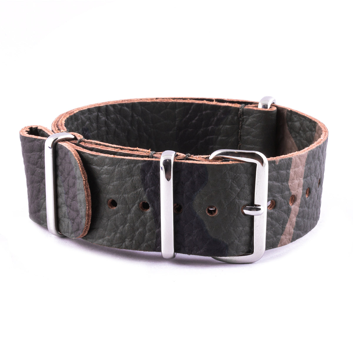 Camo buffalo leather NATO watch strap. Camo buffalo lining.