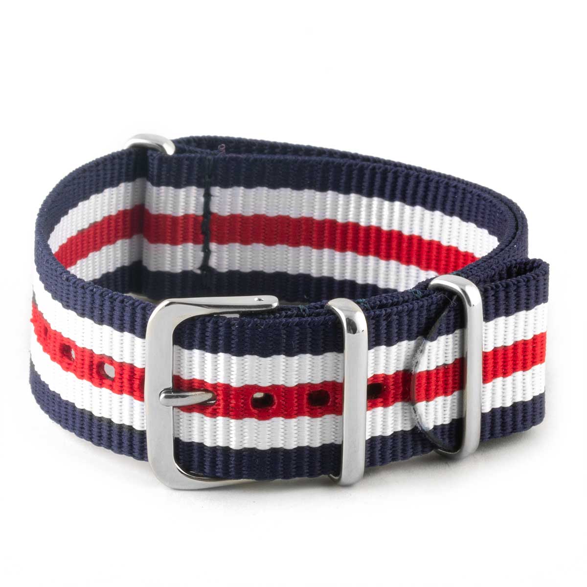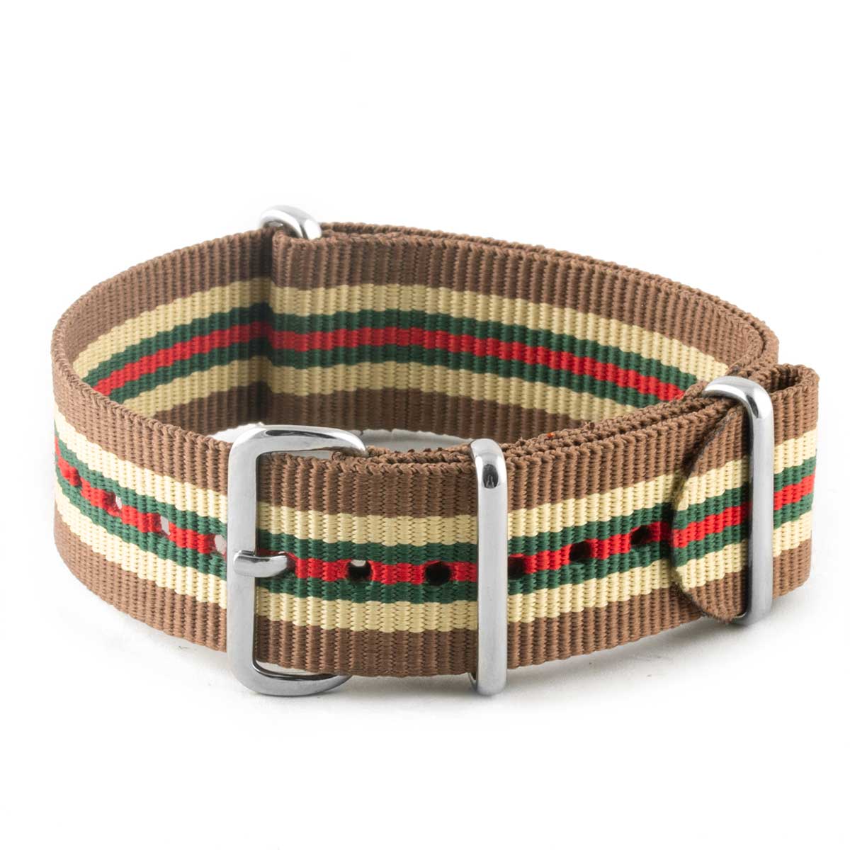Nylon / fabric nato strap - 3/4 colors stripes (black, brown, blue, red, white, orange, kaki, beige)