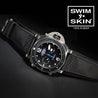 High-Tech Vulcanized Rubber Combat Strap for Panerai 47mm. This high-tech watch band is made of "SwimSkin®", our exclusively patented technology, created over a developmental period of many years for absolute perfection, requiring all-new innovative machinery and engineering techniques.