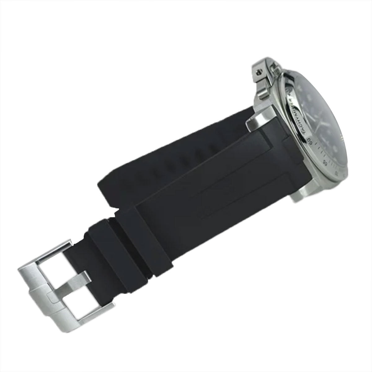 Vulcanized rubber strap which is precisely calibrated for 44mm Luminor and Luminor Marina cases. This strap utilizes "Blocked Integration" engineering for a flawless, motionless flush mount to the Panerai case.