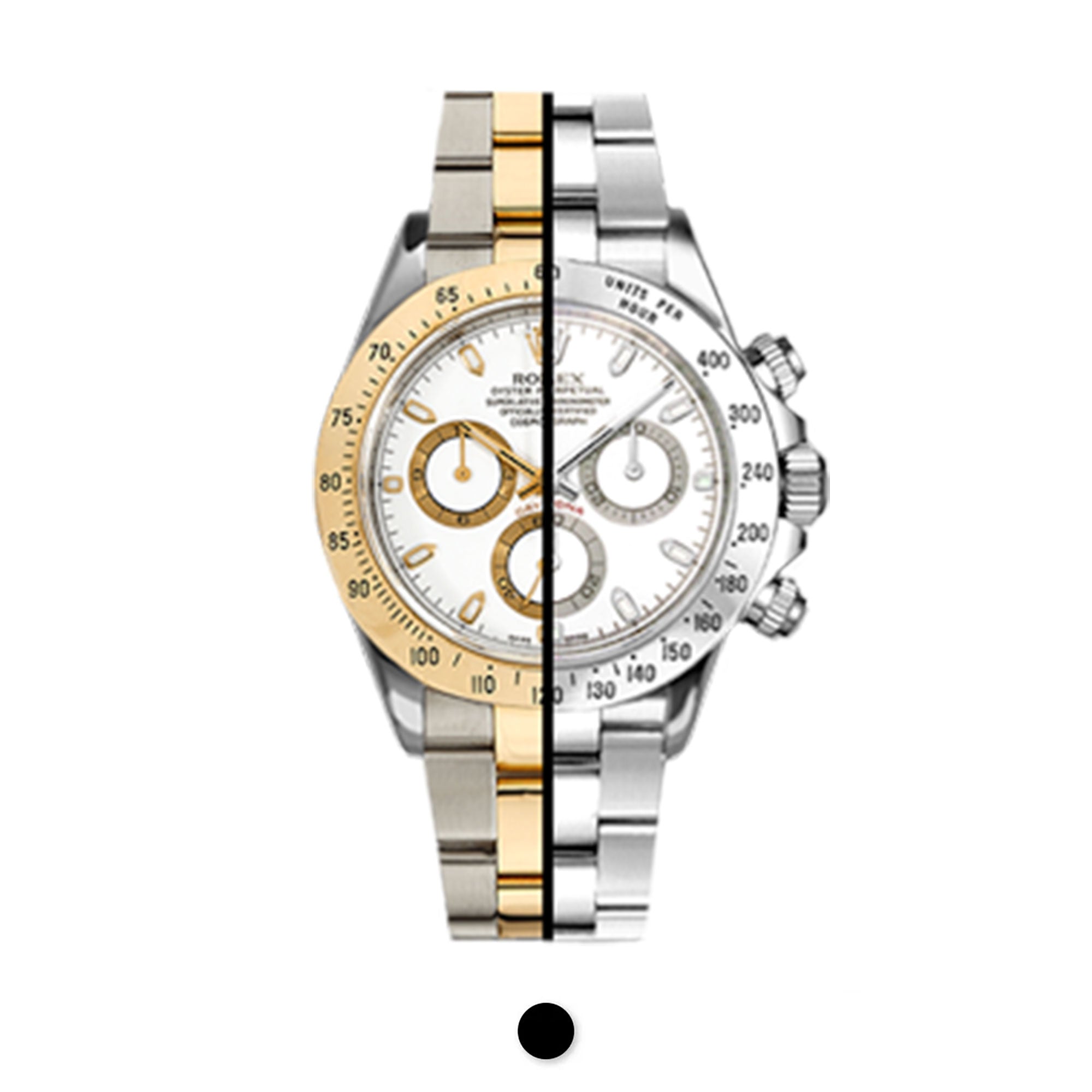 NOTE: This product is NOT compatible with models produced from 2023-present ref. 126.... Also not compatible with Daytona on Strap (leather/crocodile, which is a different watch selection on the Rolex Models page). Also not compatible with Daytona models which come on Oysterflex rubber bracelet, Platinum bracelet, Rose Gold bracelet, or White Gold bracelet.