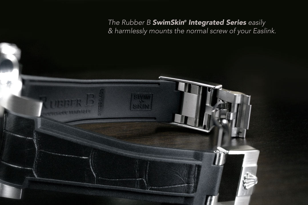 Although this strap looks and feels identical to alligator hide, it is actually 100% RUBBER, and therefore waterproof for all sports and aquatic activities.