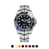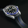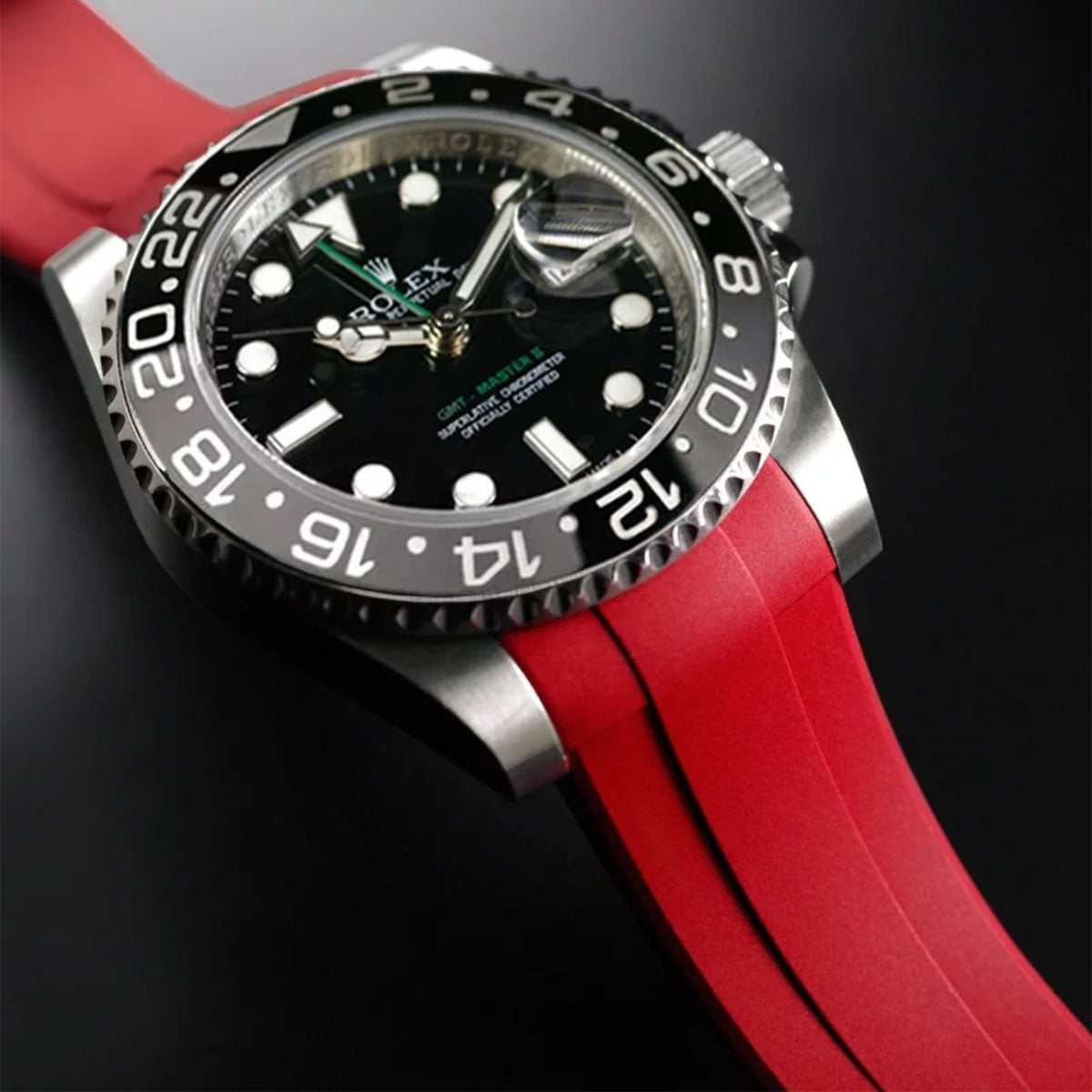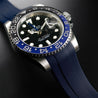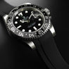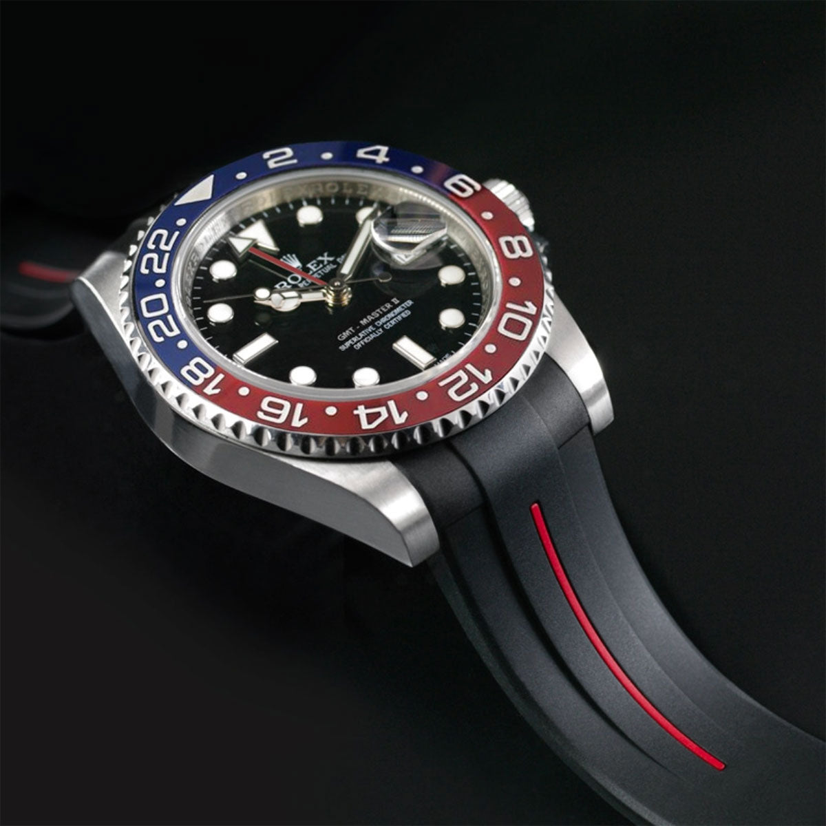 Vulcanized Rubber strap engineered to fit the Rolex GMT II Ceramic watch case and Oyster clasp*, featuring a solid insert for Blocked Integration, rotationless mount to the watch case.