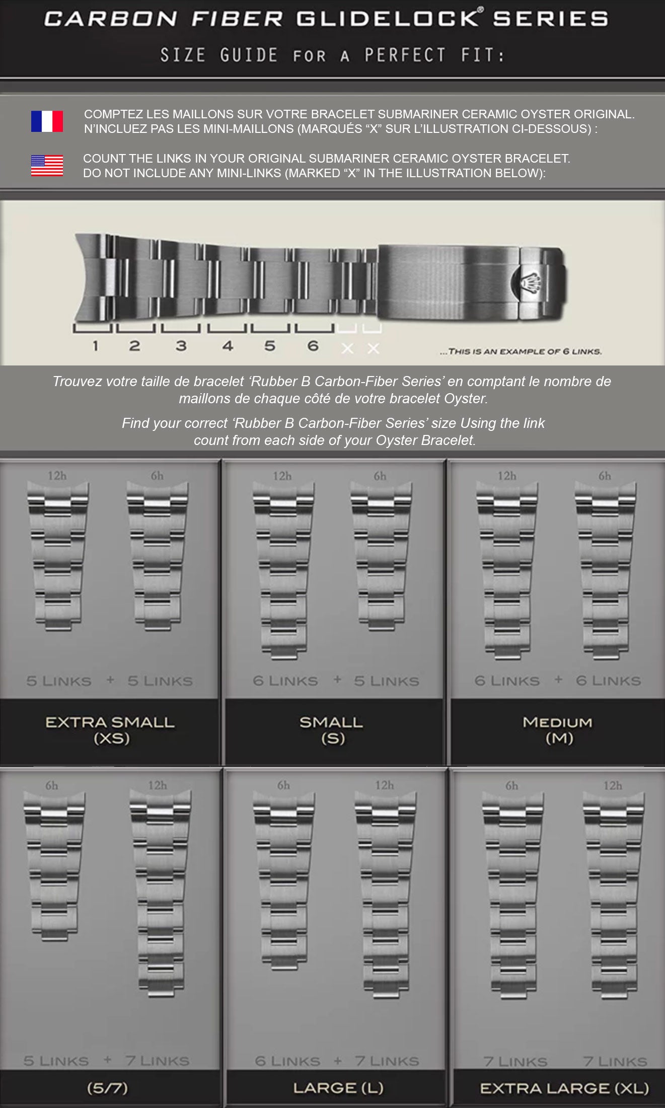 To determine your Rubber B strap size, please refer to the size guide (last photo).