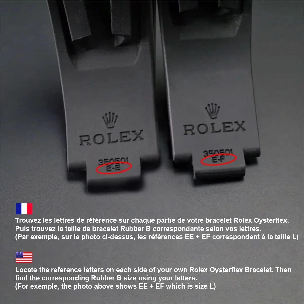 To determine your Rubber B strap size, please refer to the size guide (last photo).