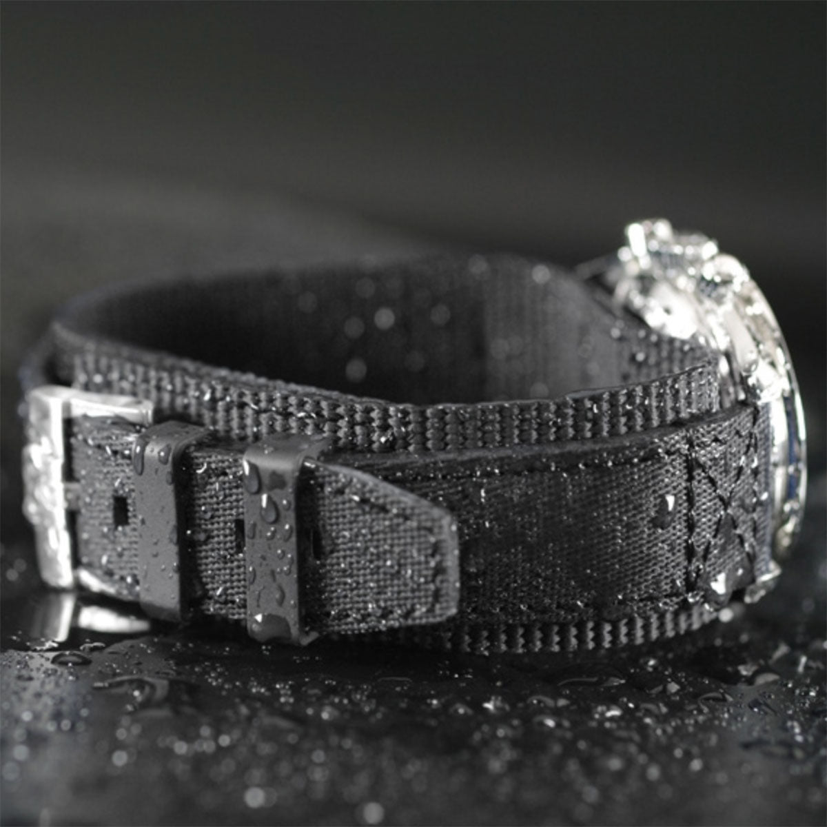 - Although this strap looks and feels identical to moisture sensitive materials such as Kevlar® and twill, it is actually 100% RUBBER, therefore waterproof for all sports and aquatic activities.