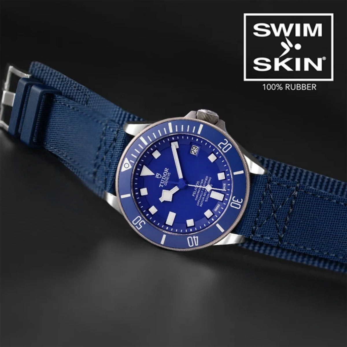Vulcanized Rubber Tang Buckle Strap for Tudor Pelagos. This high-tech watch band is made of "SwimSkin®", our exclusive patented technology, created over a developmental period of many years, requiring all-new innovative machinery and engineering techniques.