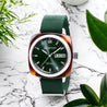 HMS DAY/DATE, TORTOISE SHELL ACETATE, BRITISH GREEN SUNRAY DIAL AND BRITISH GREEN NATO STRAP