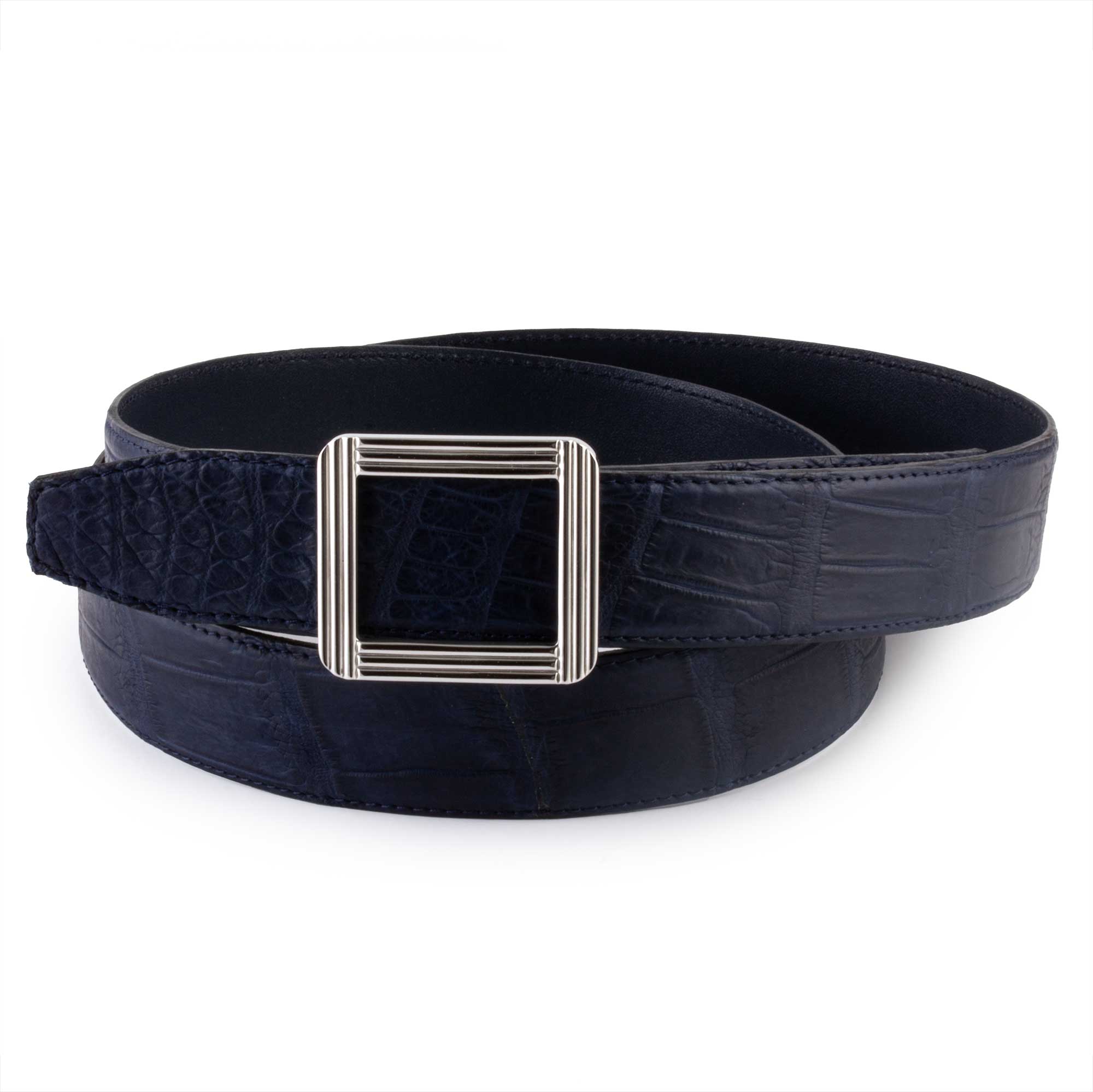 Luxury matt alligator belt, tone-on-tone box calf lining, handcrafted in France.