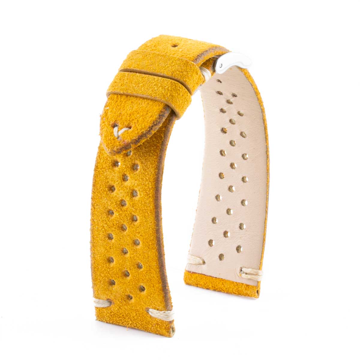 20mm (0.79 inch) at the watch, 18mm (0.71 inch) at the buckle (only for the "Suede mustard yellow" straps).