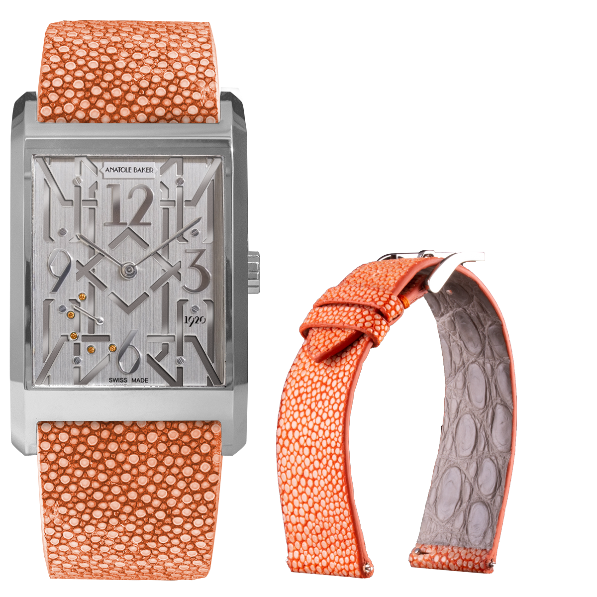 Premium leather watch band - Anatole Baker - Orange Stingray