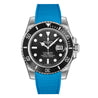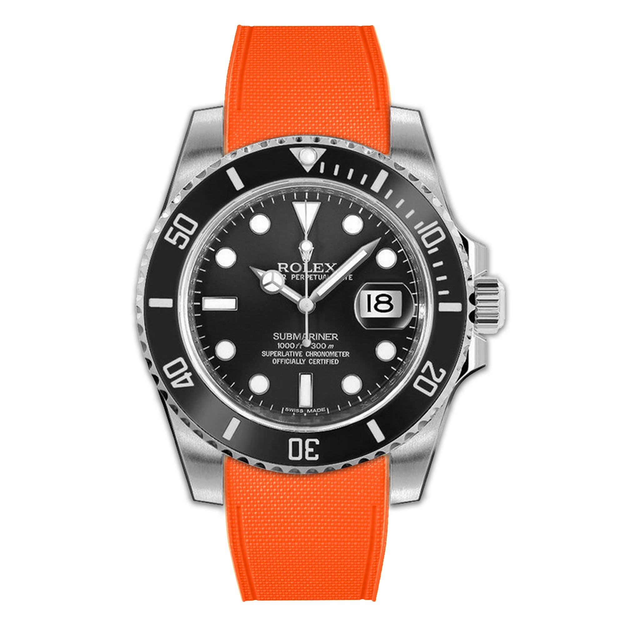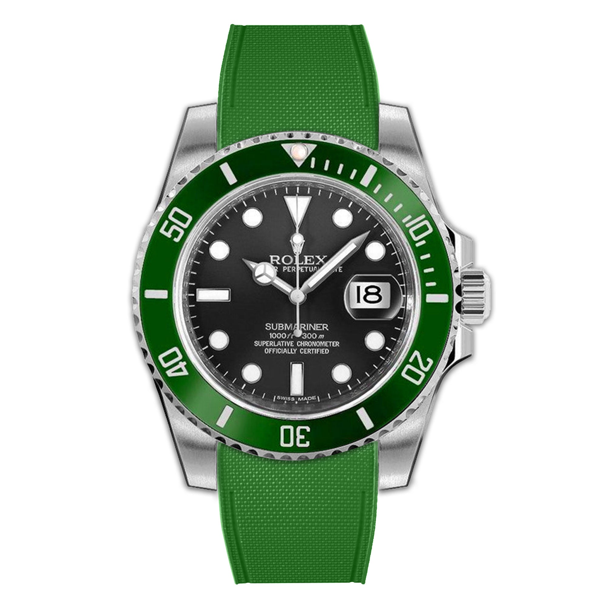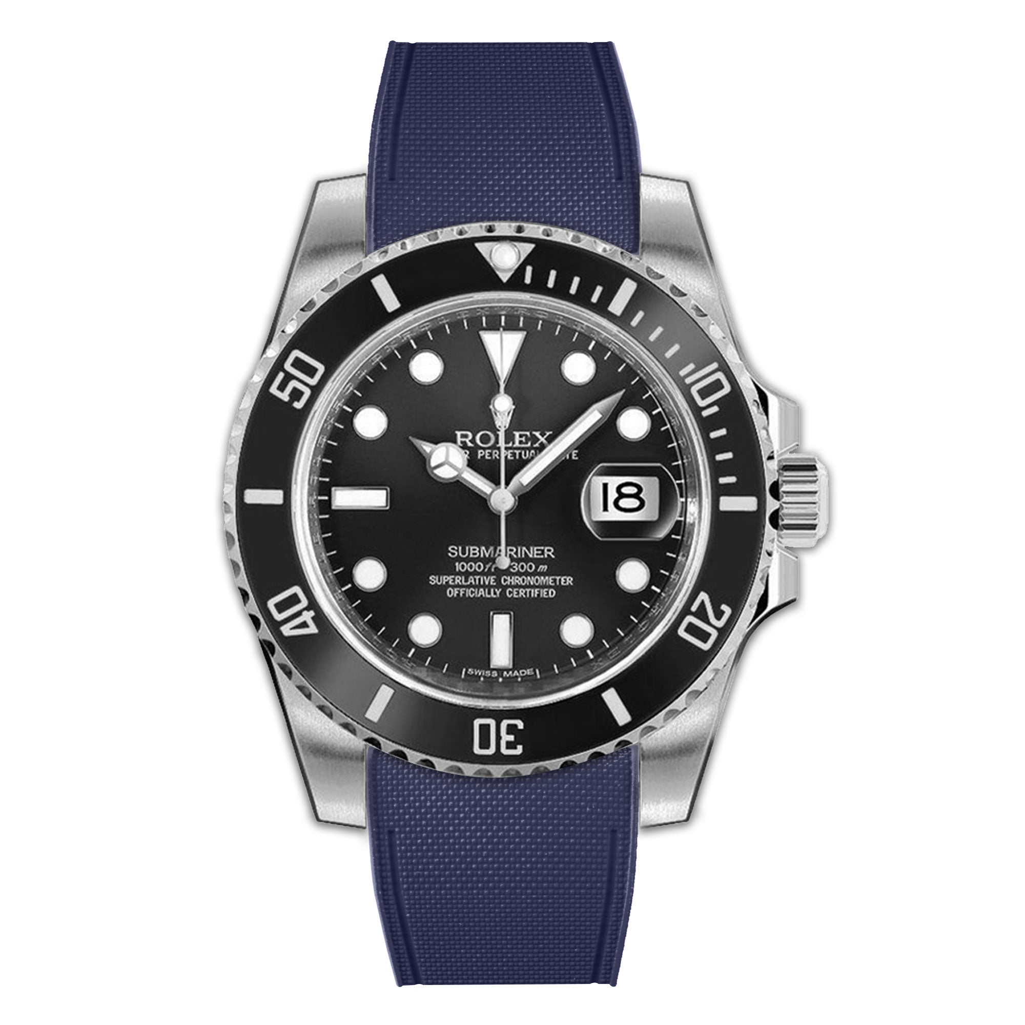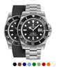R Strap high density rubber integrated watch band, hypoallergenic, anti-perspirant, waterproof, specially designed and developed to fit the watch case of your Rolex Submariner 40mm (pre 2010) non-ceramic with Oyster clasp.