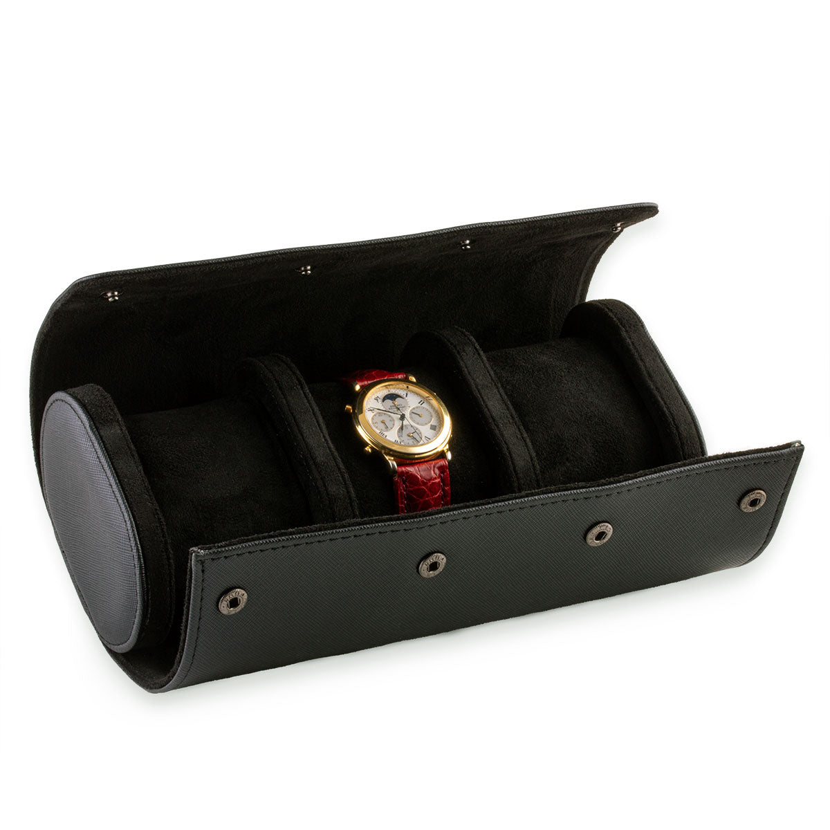 Travel case - Watch roll for 3 watches - Black, grey, blue, brown