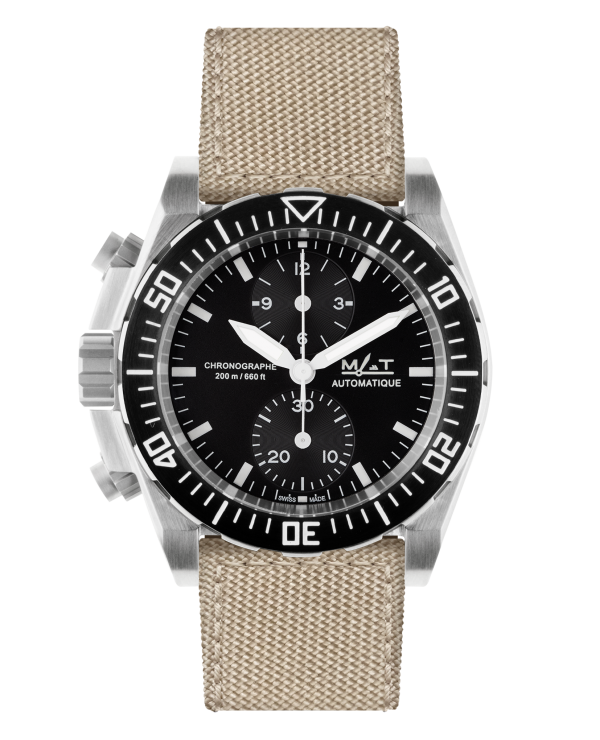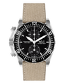 It could have equipped the pioneers of aviation. The automatic "AIR" chronograph will appeal to enthusiasts of both contemporary and past aviation. With a steel case, black bezel, Superluminova markers and hands, this adventurer's watch is paired with a sand-colored canvas strap that unmistakably evokes the world of wide-open spaces.