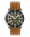 Comes with 3 interchangeable straps: a tan vegetable-tanned leather strap, 1 black genuine rubber, and 1 khaki canvas.
