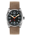 Comes with 3 interchangeable straps: 1 tan vegetable tanned leather, 1 black tactical strap, and 1 genuine navy rubber with deployant buckle.