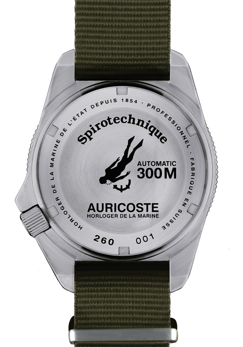 Spirotechnique (the inventor of the modern autonomous diving suit) has renewed its trust in Maison Auricoste for the release of its new diving watch, the Auricoste-Spirotechnique.