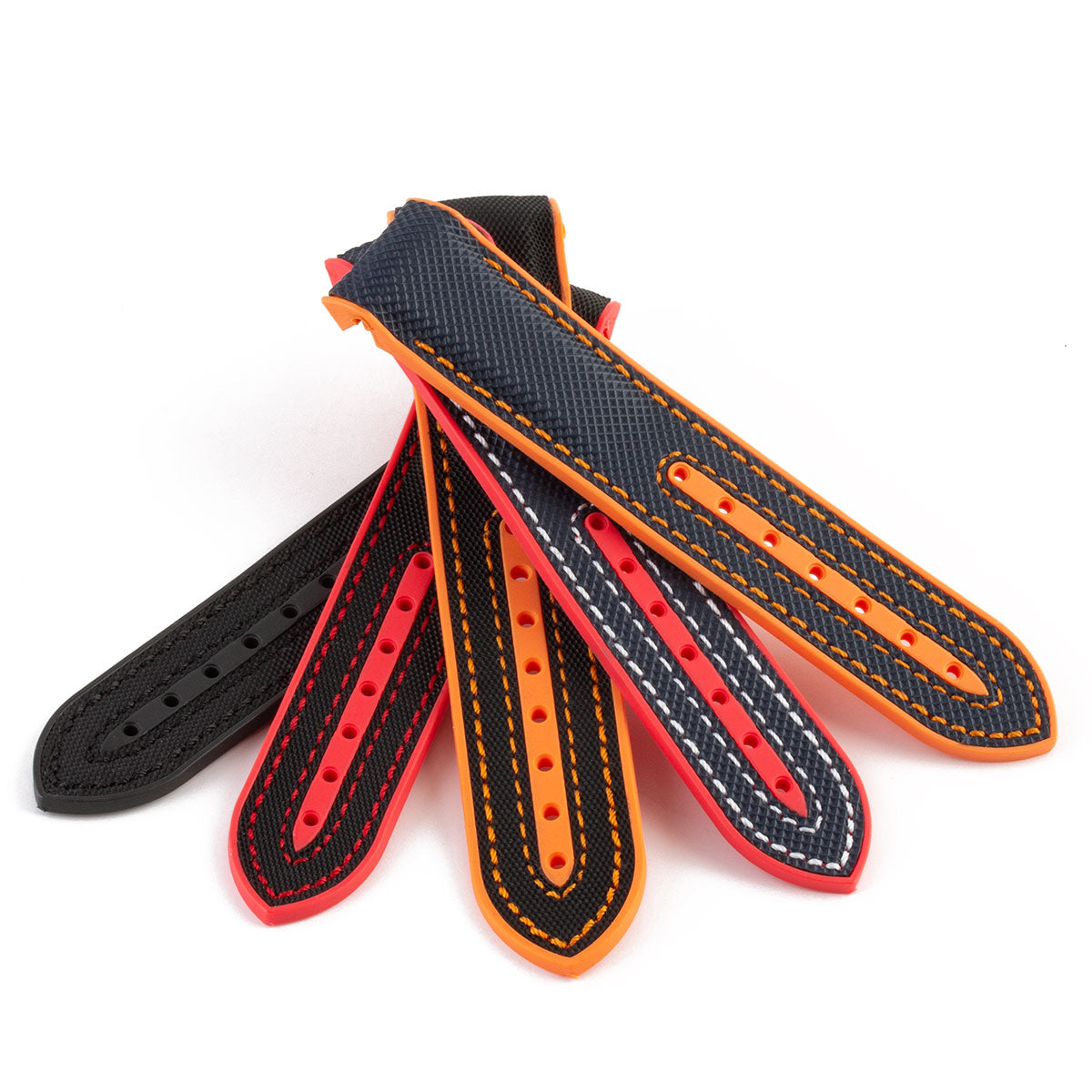 Omega Speedmaster / Seamaster - Integrated rubber watch band - Stitched with cordura effect (black, blue, red, orange)