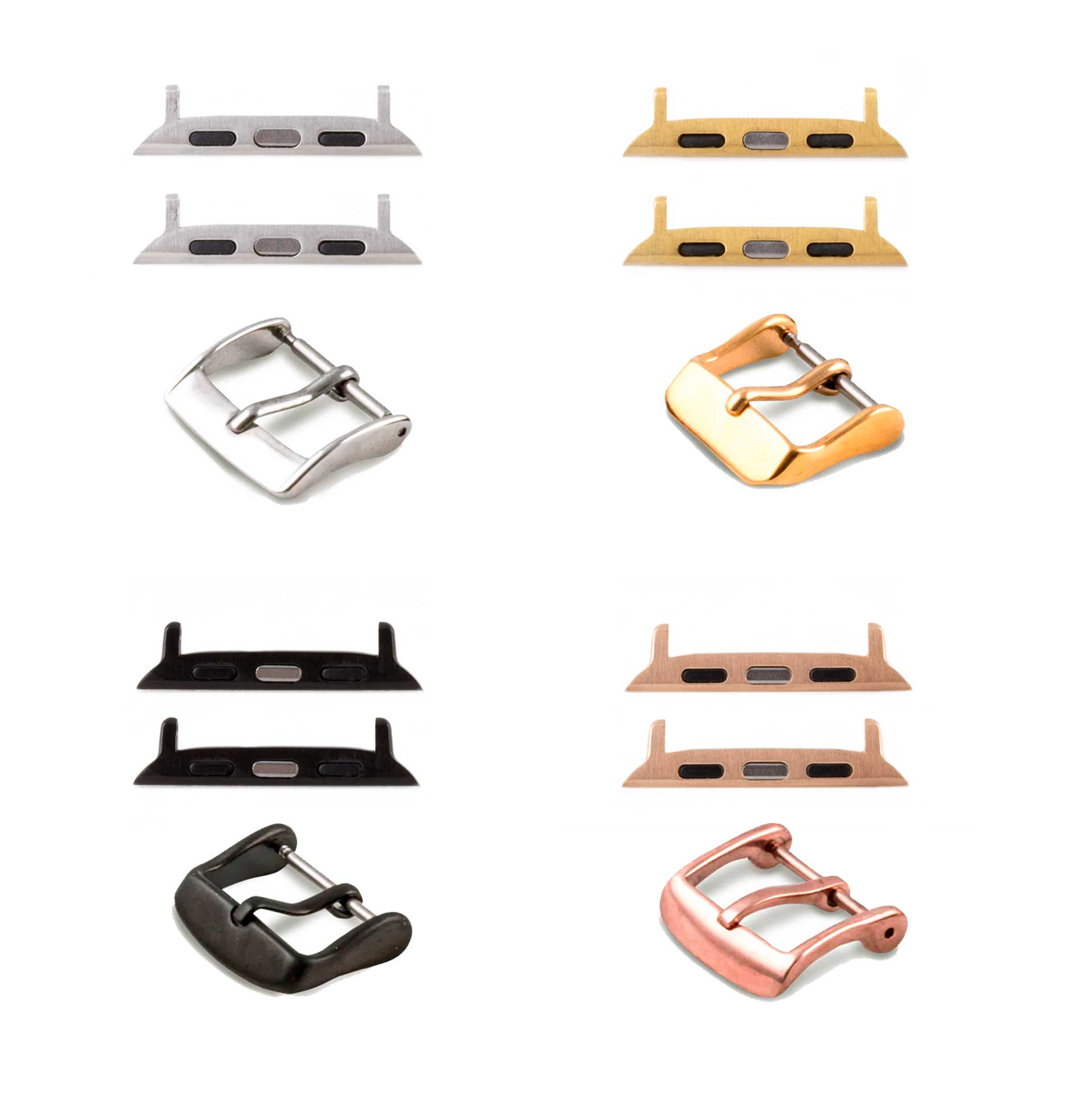 Apple Watch adapters and buckle (steel, brushed steel, gold colored, black PVD, pink gold PVD)