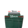 28mm (1.10 inches) at the watch with 18mm (0.04 inches) metal insert, 20mm (0.79 inch) at the buckle.