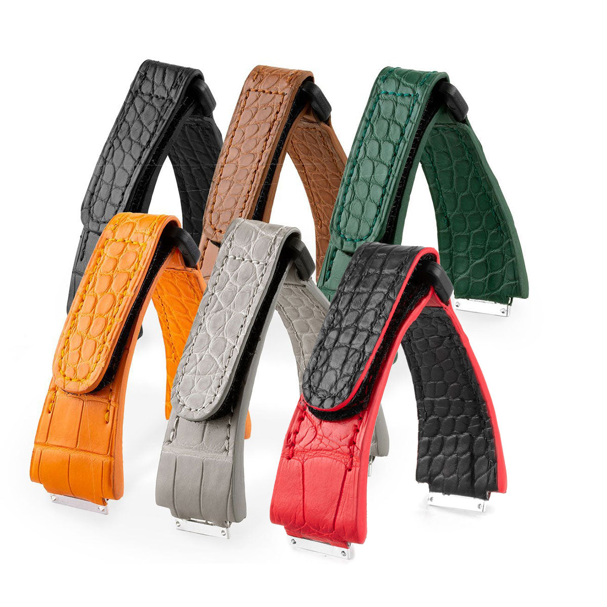 Richard Mille - Velcro leather watch strap - Alligator (black, brown, green, orange, grey, red)