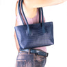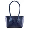 Genuine alligator leather hand bag, fabric inside. Blue rubber calf handles.