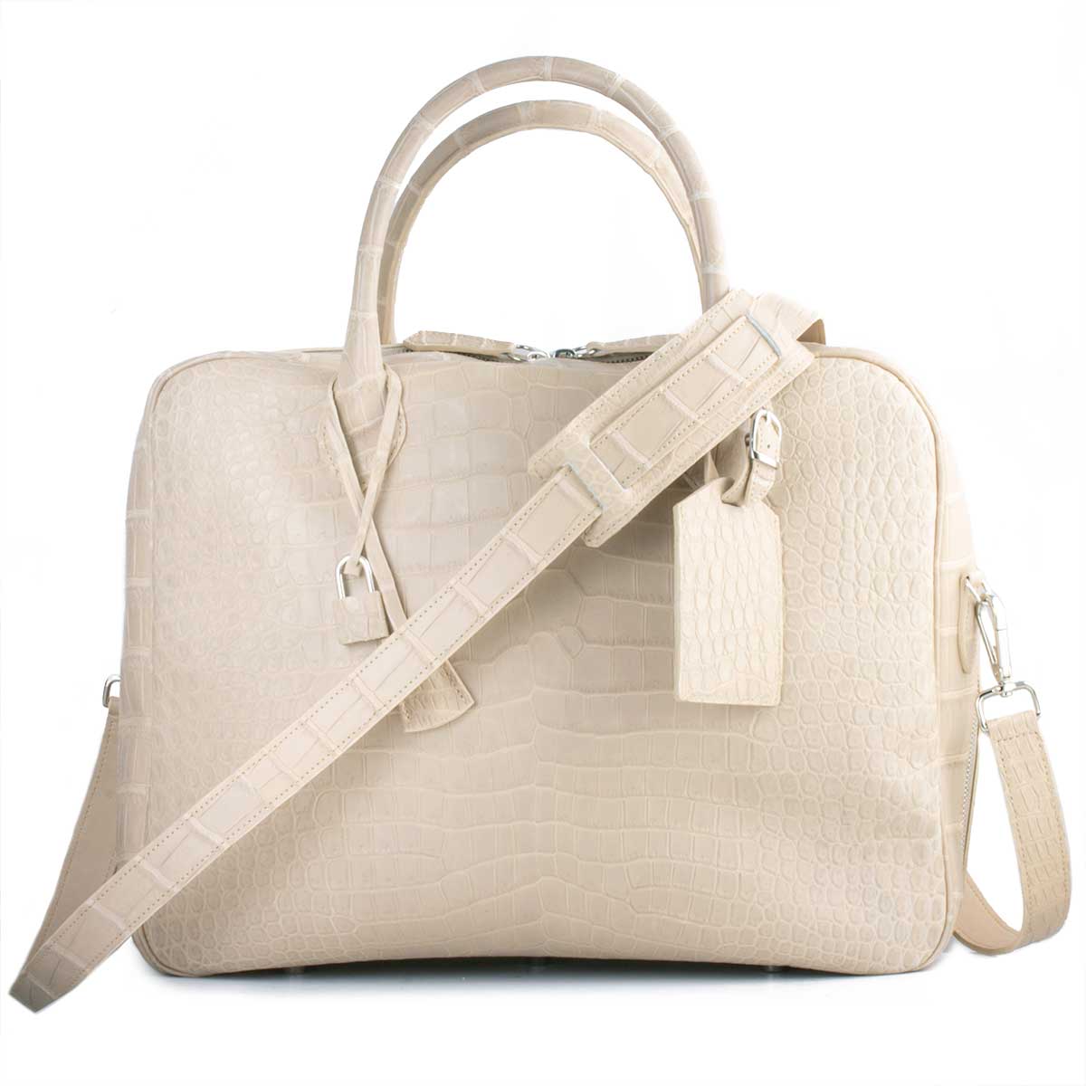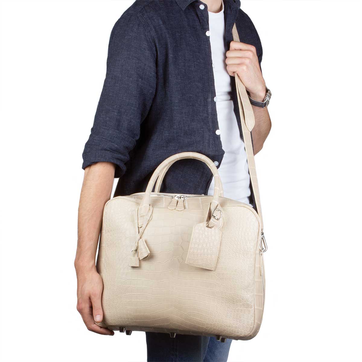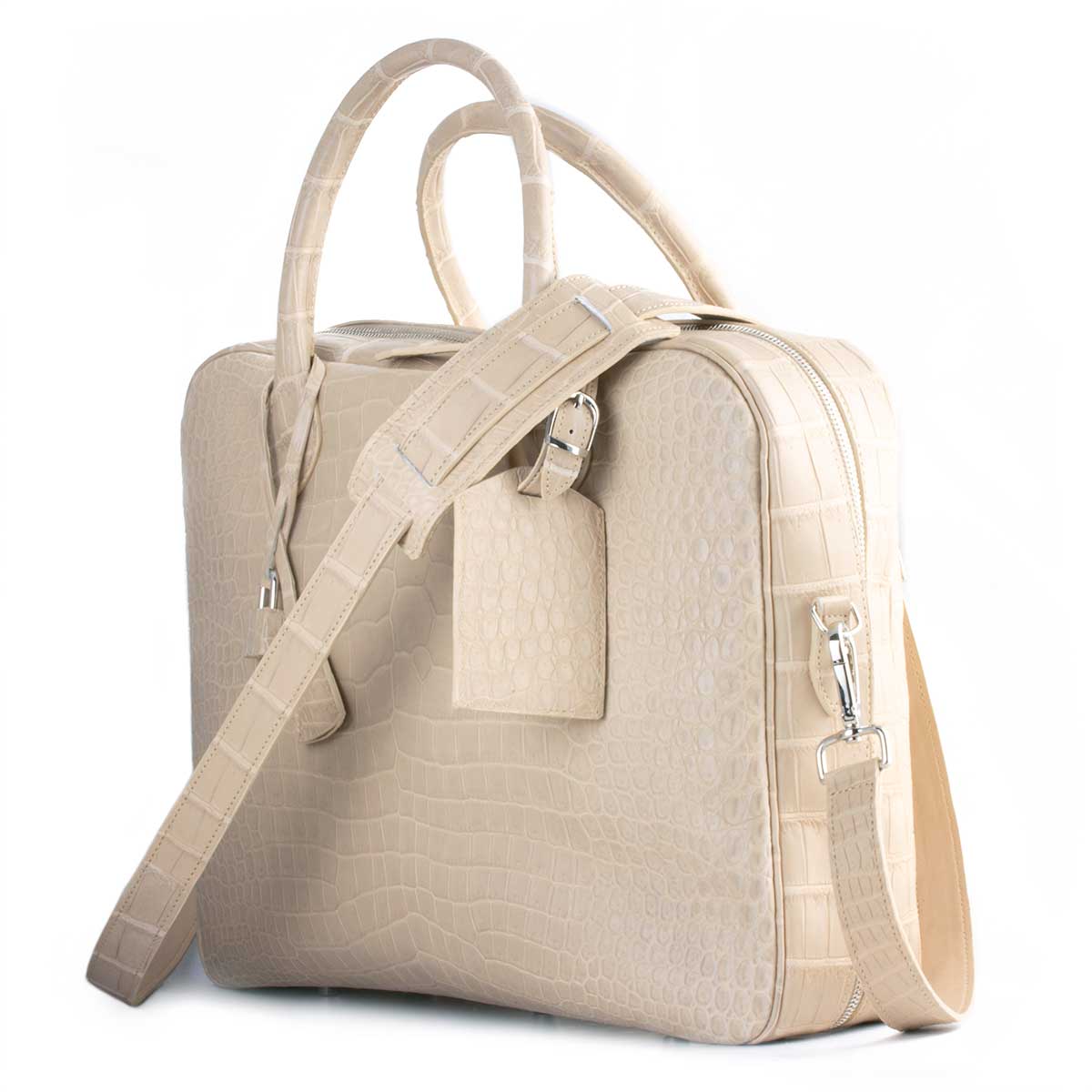 Leather briefcase - Beige porosus crocodile bag